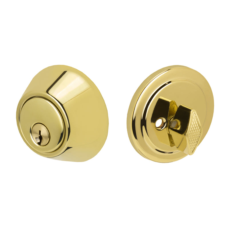 The Atlantis single cylinder deadbolt locks/unlocks with a key on the outside or the thumbturn on the inside.