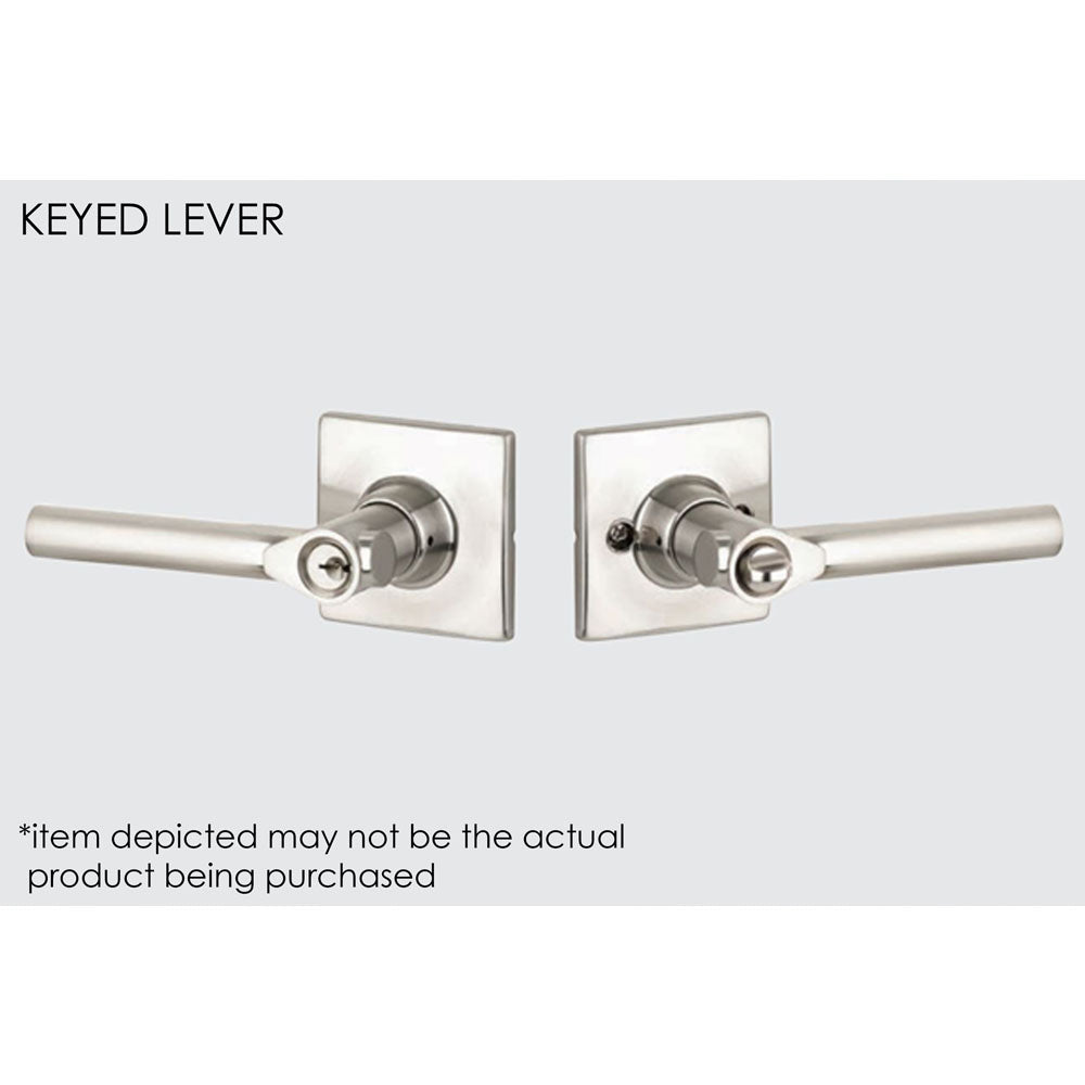 The Farmington entry lever set locks/unlocks with a key on the outside and a turnpiece on the inside. The Farmington lever is also available in the privacy (locks/unlocks with a turnpiece on the interior and can be unlocked from the exterior with the emergency egress), passage (contains a passage latch but no locking function), or dummy (contains no latch or locking function). These items are listed separately.